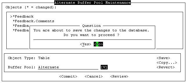 Чтобы настроить конкретный объект для использования Альтернативного буферного пула, можно воспользоваться меню Alternate Buffer Pool Maintenance из Data Dictionary. Такие объекты базы данных должны всегда находиться в области хранения с типом SAT-II. Изменить тип буферного пула для объекта можно как в online, так и в offline. Далее описаны действия, которые необходимо выполнить для этой настройки: