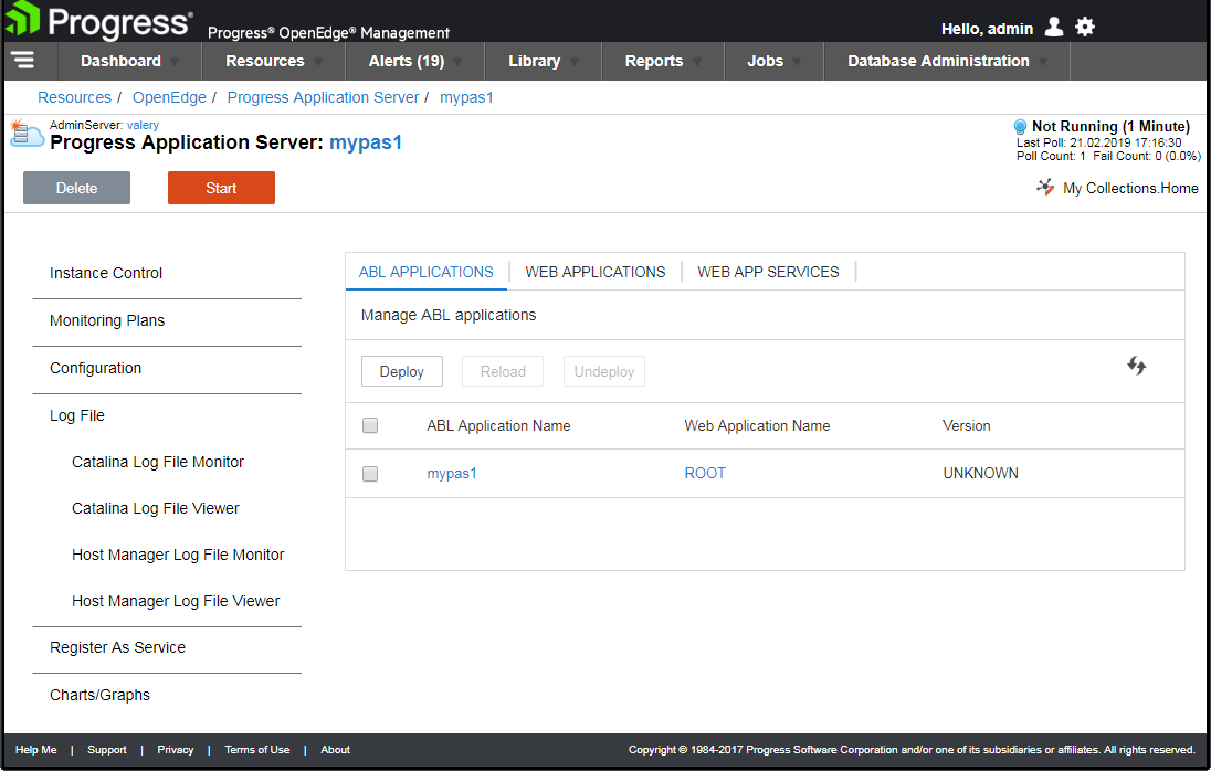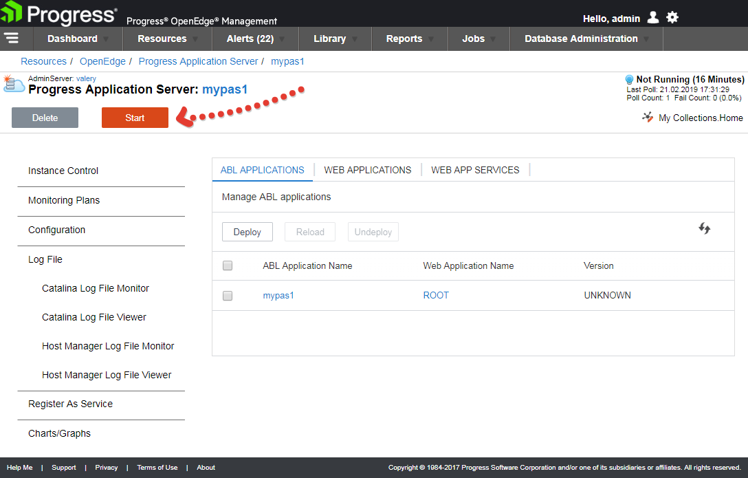 Задание 3. Старт экземпляра PAS for OpenEdge