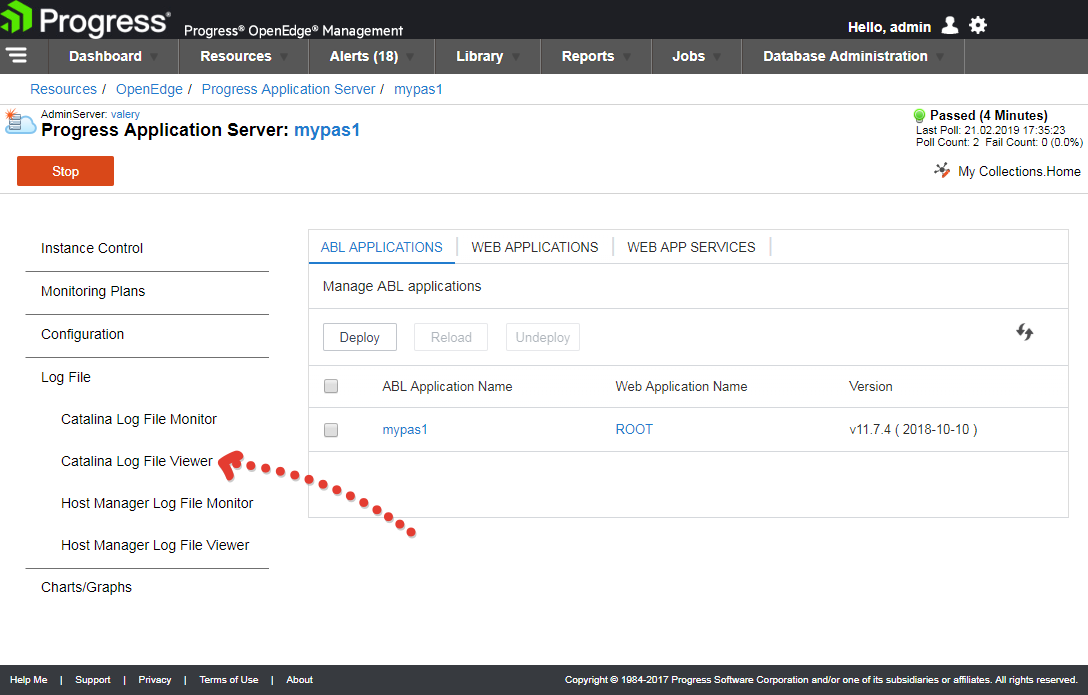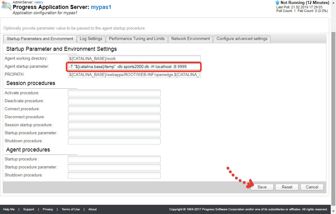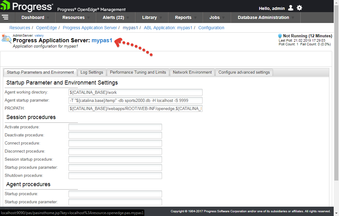 Задание 2. Настройка экземпляра PAS for OpenEdge